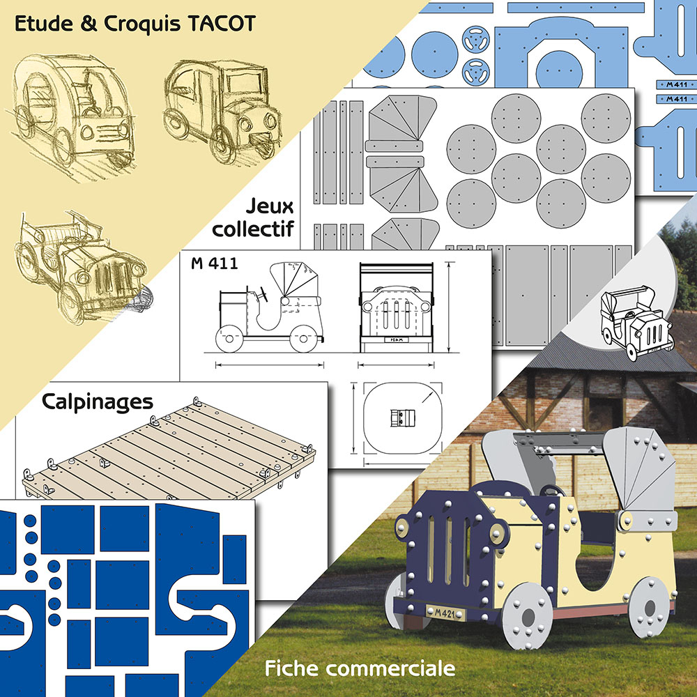 Etude d'une voiture pour enfant à usage de jeux collectifs.